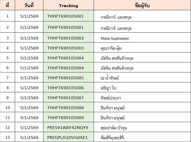 ตรวจสอบหมายเลขแทรคกิ้ง